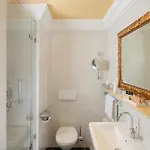 Un balcone, una cassetta di sicurezza e una TV a schermo piatto con canali satellitari sono a disposizione nelle camere dell'hotel Atlantic Parkhotel Baden-Baden. Vantano i bagni con un bagno con WC separato e una doccia, nonché asciugacapelli e cuffie per la doccia.